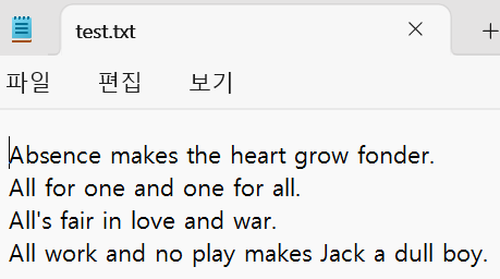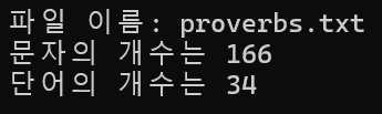 01. 텍스트 파일 proverbs.txt를 읽어서 각 줄의 앞에 줄 번호를 붙여서 화면에 출력하는 프로그램을 작성하라.