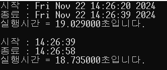 printf("실행시간 = %lf초입니다. \n\n", duration);