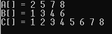 16. 2개의 정렬된 정수 배열 A[ ]와 B[ ]가 있다고 가정하자. 이 2개의 배열을 합쳐서 하나의 정렬된 배열 C[]로 만드는 함수를 작성하고 테스트한다. 다음과 같은 함수 원형을 가진다고 가정하라.